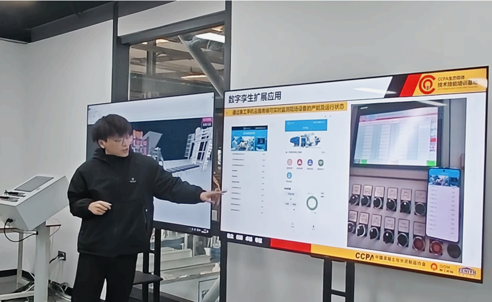প্রশিক্ষণ সাইটে, অংশগ্রহণকারীরা কাঁচামাল মিশ্রণ থেকে শুরু করে শেষ পণ্য নিরাময় পর্যন্ত ডিজিটাল টুইন সিস্টেমের মাধ্যমে ডিজিটাল নিয়ন্ত্রণের পুরো প্রক্রিয়া সম্পর্কে একটি স্বজ্ঞাত বোঝাপড়া অর্জন করেছিলেন। সিস্টেমটি রিয়েল-টাইম উত্পাদন ডেটা সংগ্রহ করে, ছাঁচ পরিধান, হাইড্রোলিক সিস্টেমের স্থিতি এবং অন্যান্য সরঞ্জাম অপারেটিং শর্তগুলির সুনির্দিষ্ট ভবিষ্যদ্বাণী সক্ষম করে। প্রশিক্ষকরা ব্লক উত্পাদনের জন্য প্রধান মেশিন প্যারামিটারগুলির বিশদ ব্যাখ্যা সরবরাহ করেছিলেন এবং এগুলি হ্যান্ড-অন বিক্ষোভের সাথে পরিপূরক করেছেন, যা অংশগ্রহণকারীদের তত্ত্ব এবং অনুশীলনের সংমিশ্রণের মাধ্যমে দ্রুত মূল দক্ষতার দক্ষতা অর্জন করতে দেয়।